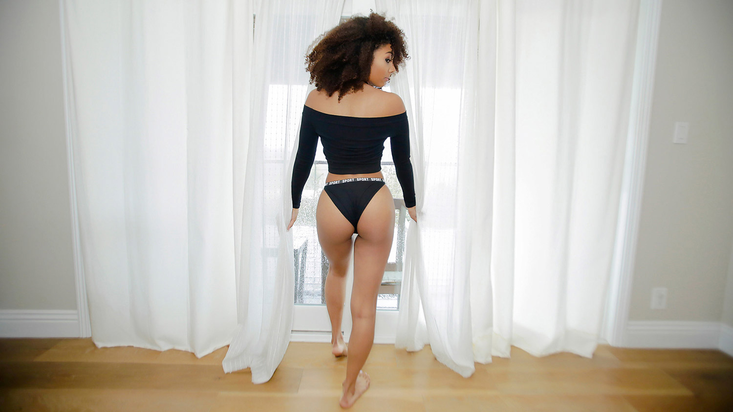 Nia Nixon is looking extra sexy in her skin tight top today. She does a split and shows off her flexibility for the cam while getting herself nice and juicy for the cock to come. And when our stud shows up, she does not disappoint. She rides his meaty prick, sliding her pussy up and down to create some of the hottest friction he has ever felt. Then she flips around on her stomach and lets him pierce her pussy from behind. She loves cumming on his hard shaft! Finally, she kneels down and takes a heaping load of white cum all over her silky black skin. How does that feel on your face, Nia?